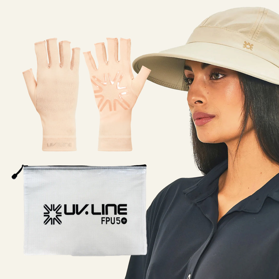 Diseñado para quienes priorizan una barrera física total. La Visera Niza ofrece una cobertura frontal amplia y elegante, mientras que los guantes de dedos largos aseguran una protección 360°. Ideal si aprovechas estos días para descansar tras un tratamiento dermatológico.