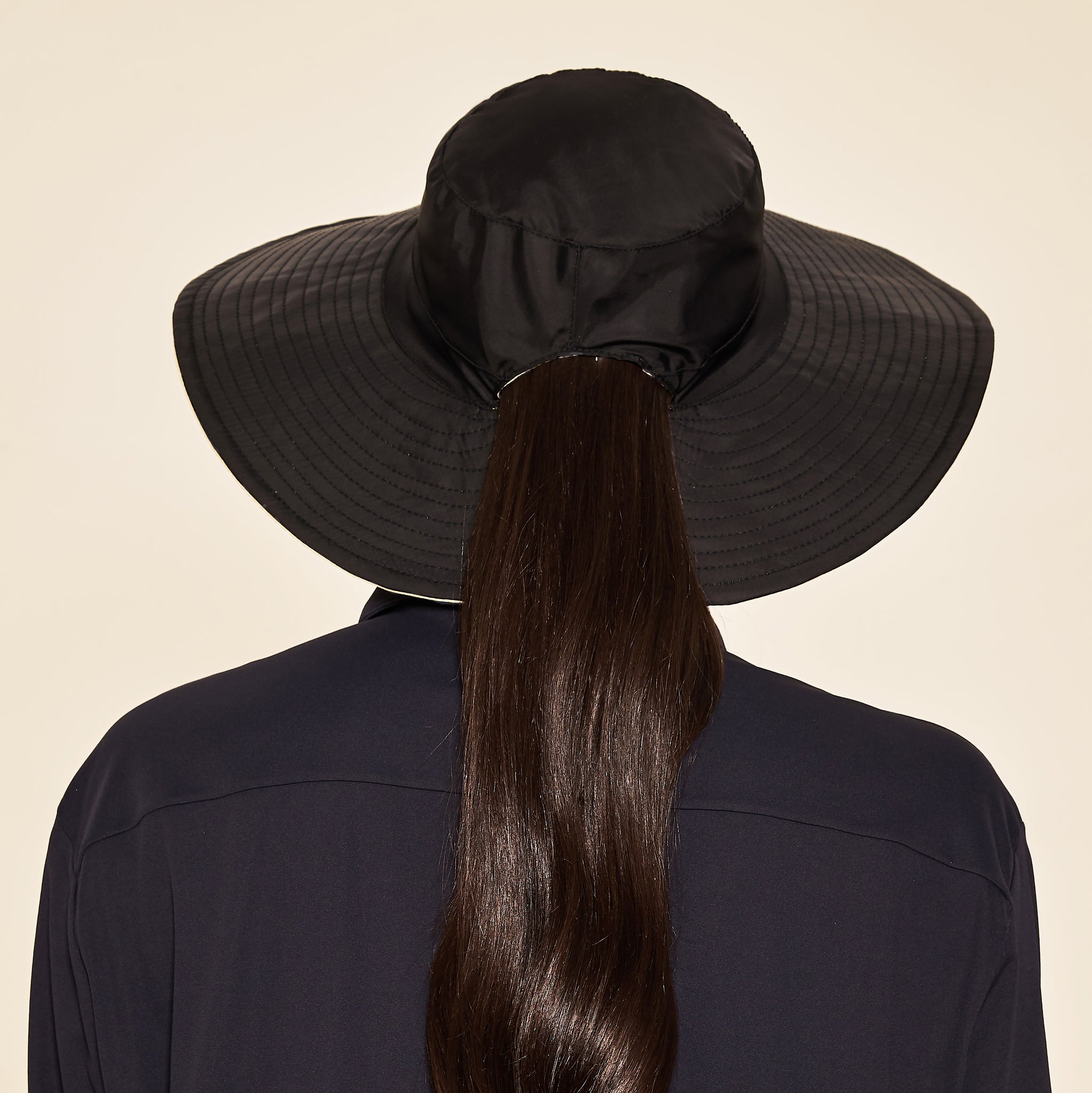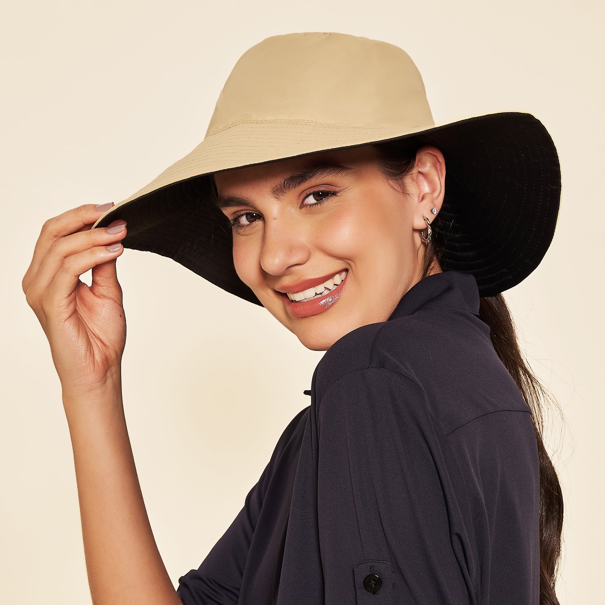 Sombrero San Diego reversible negro/arena con protección UV permanente. Plegable y versátil, ideal para llevar siempre contigo. Úsalo con cabello suelto o atado. ¡Best Seller!