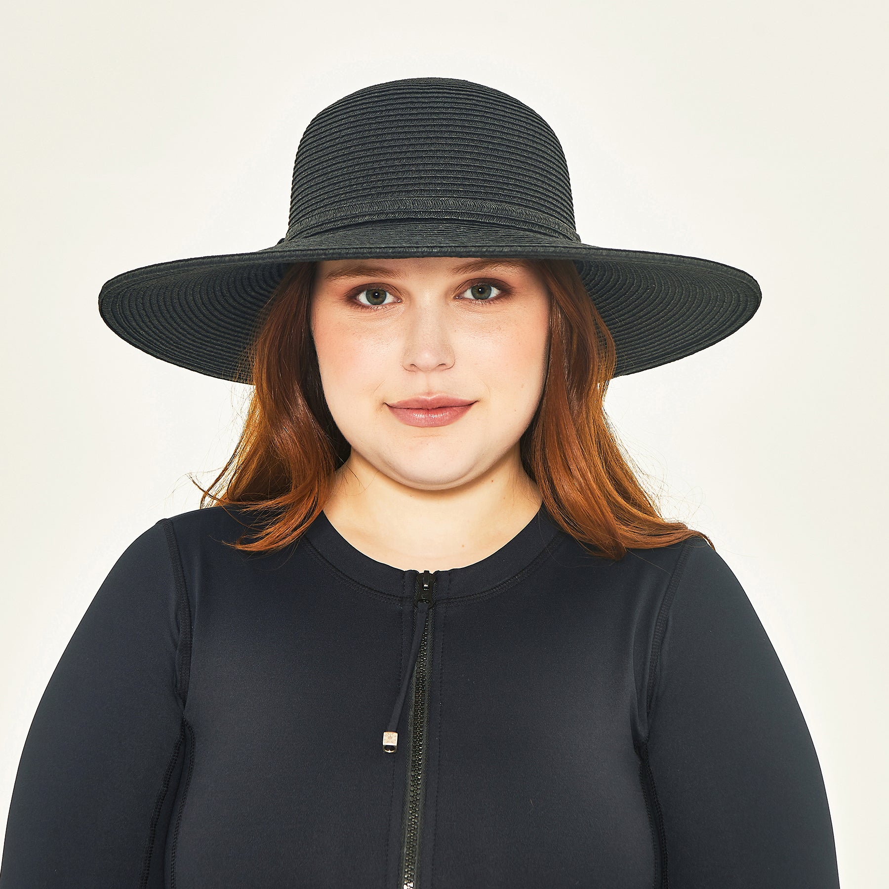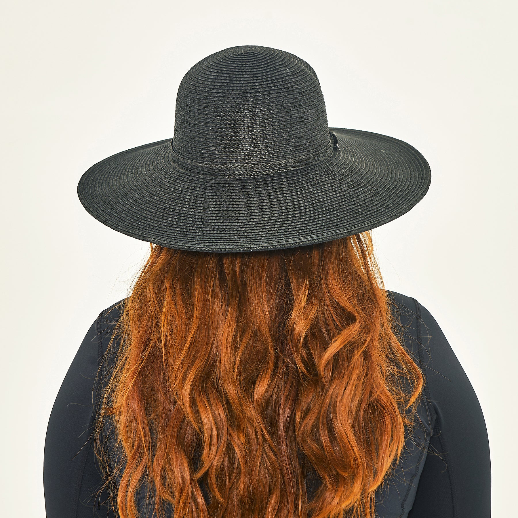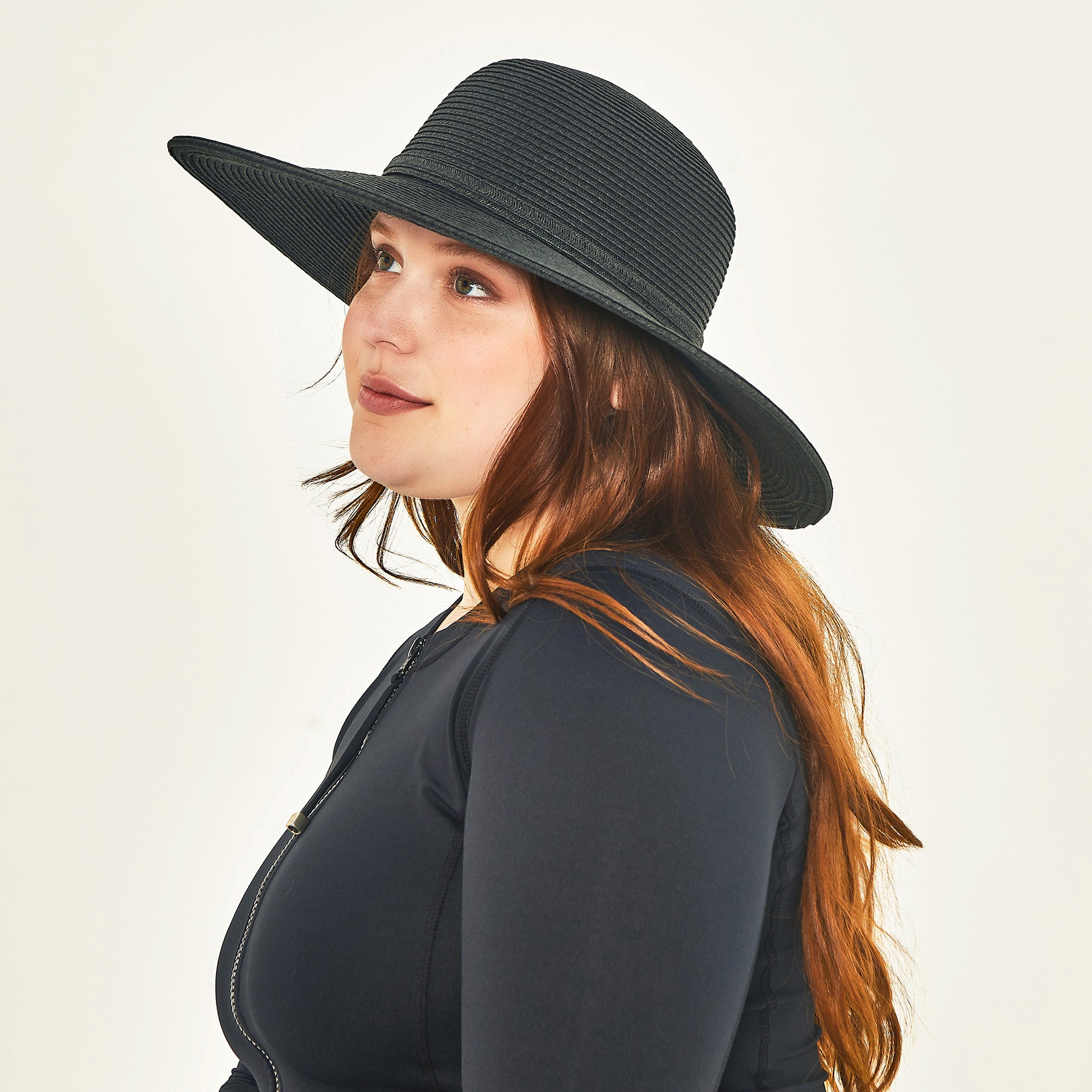 Sombrero de paja UV con protección solar. El modelo Jurerê es el más elegante y atemporal de la línea, con ala ancha y copa tejida con una tira de paja.